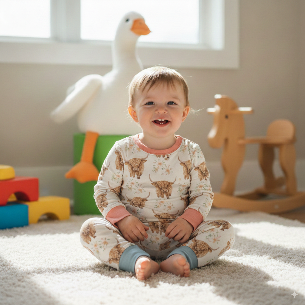 Pink Highland Cows - Hypo-Allergenic Bamboo 2 Piece Pyjama Set